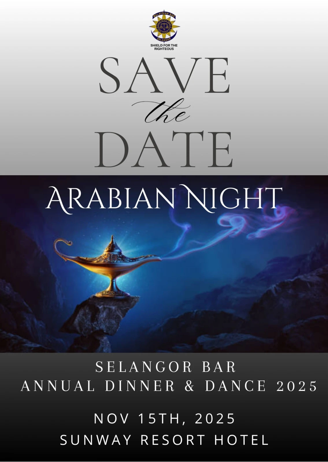 We are excited to announce the upcoming Selangor Bar Annual Dinner & Dance for 2025! This year, we invite you to join us for a night of enchantment and celebration under the thrilling theme of Arabian Night.